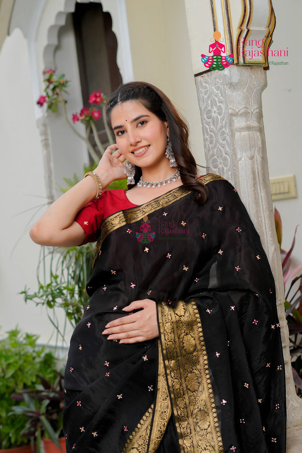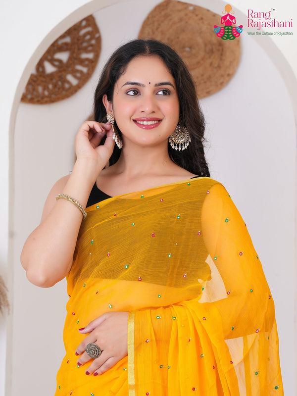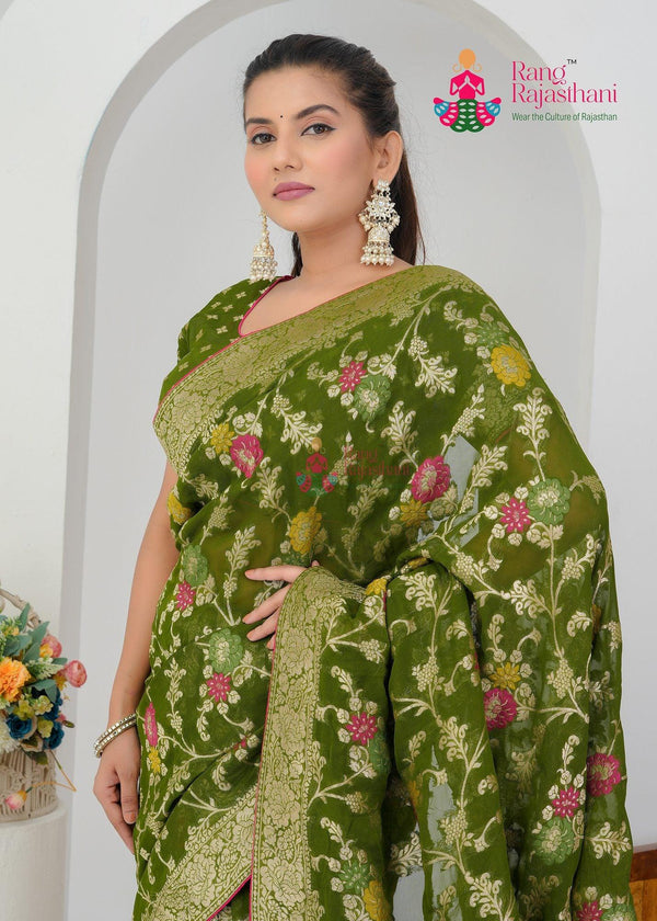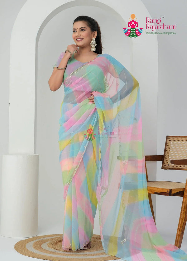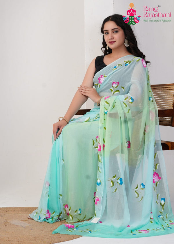 Aqua Firozi Pure Chinon Saree : Soft Shine
